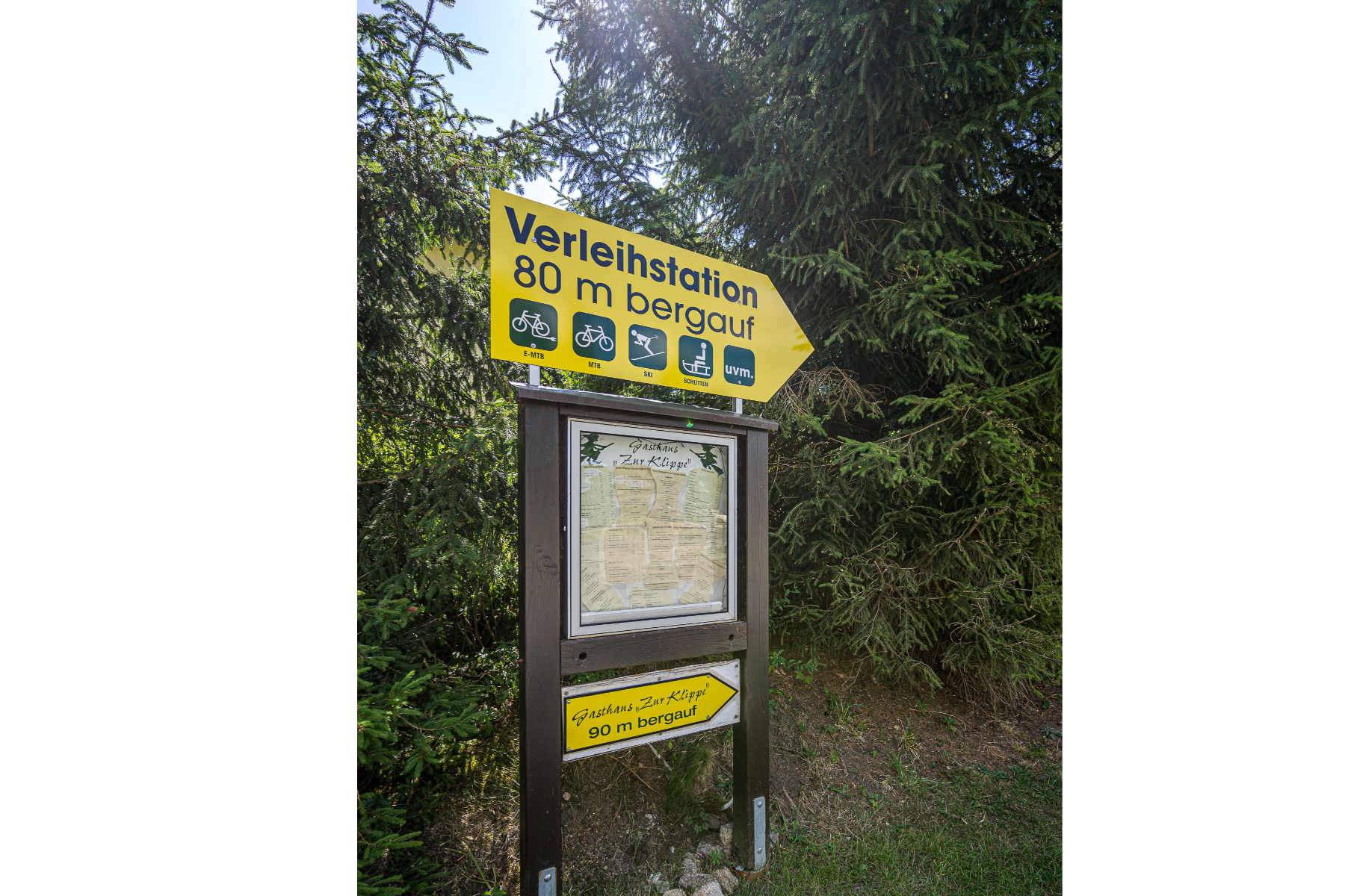 Gern können Sie in der hauseigenen Verleihstation E-Mountain-Bikes, E-Trekking-Bikes, Mountainbikes, Kinderräder, Fahrradanhänger für die Kids und auch Fellnasen, Bollenwagen und vieles mehr leihen!!