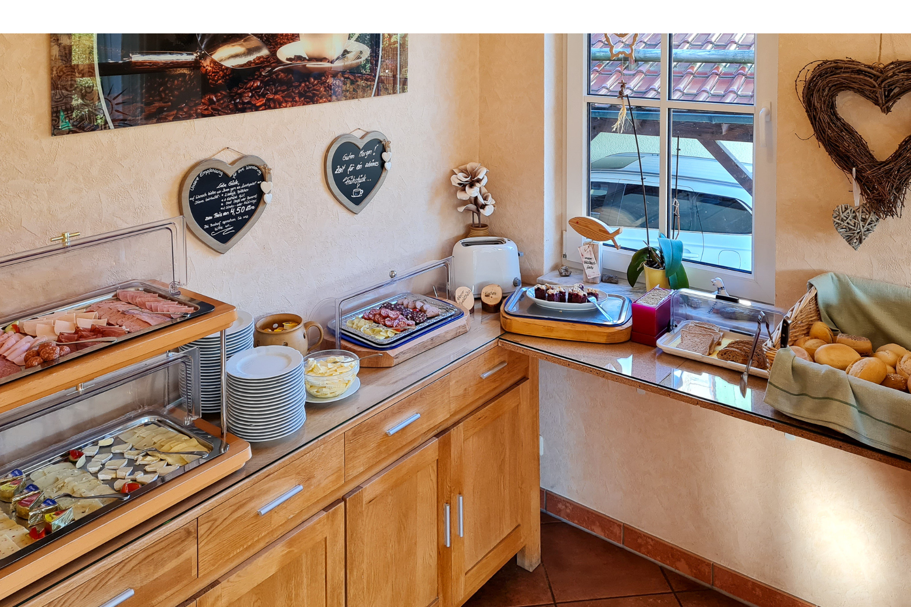Bei Buchung einer unserer Ferienwohnung kann das Schlemmerfrühstücksbüffet mit dazugebucht werden.