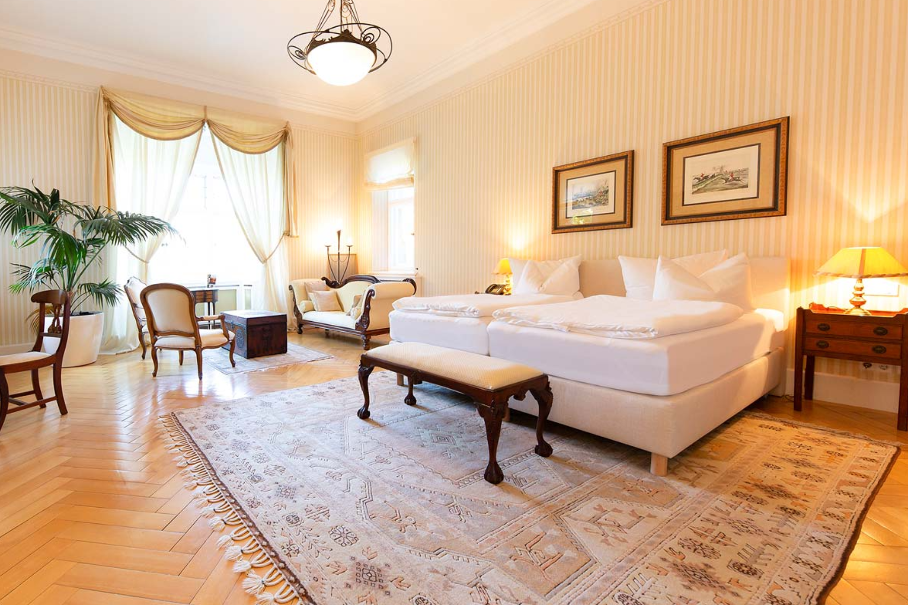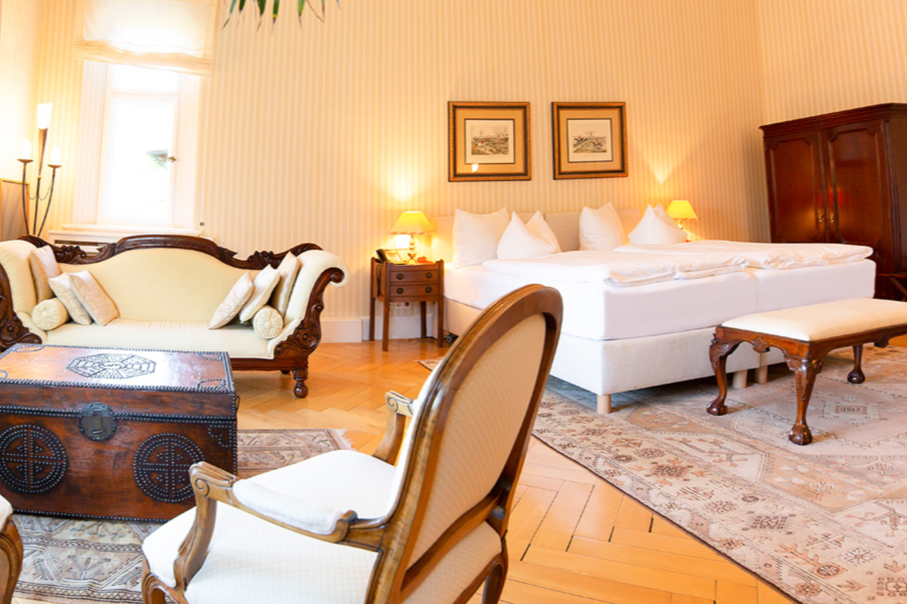 Oder lassen Sie einfach in der Villa die Seele baumeln - unser schönes Haus bietet zahlreiche Orte der Entspannung - angefangen über unseren großen Wintergarten, über die Salons, den Club, das Restaurant und die Bar bis hin zum Wellnessbereich. Und wer die Natur vorzieht, setzt sich auf die freie Terrasse am Restaurant oder in unseren Sommergarten oder genießt unseren großen Park mit seinen Tieren.