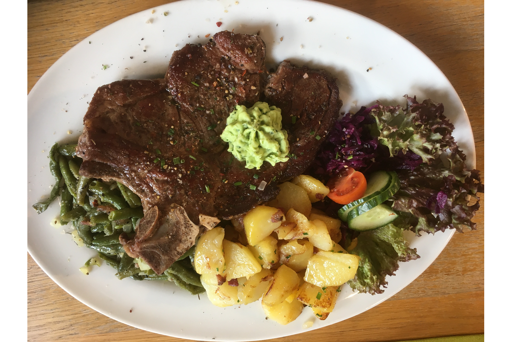 在我们的餐厅,您可以品尝到来自哈尔茨红山牛和安格勒鞍背猪的健康菜肴。